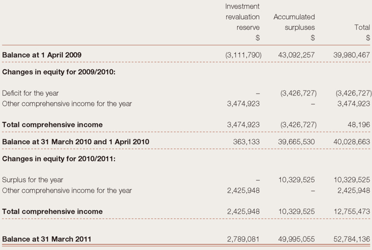 state of affairs of the Council as at 31 March 2011 and of its surplus