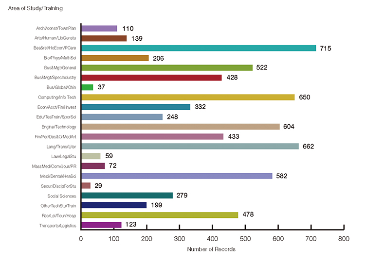 Number of Current Qualifications on QR by Area of Study/Training (March 2011)