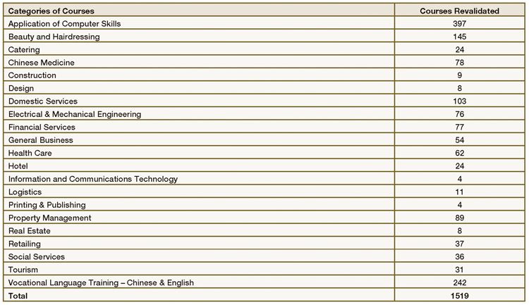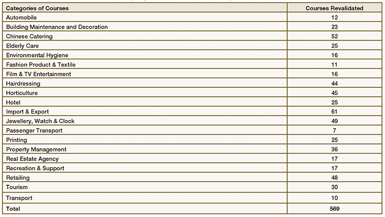 Breakdown of revalidated SUS courses (1 April 2010 ¡V 31 March 2011)
