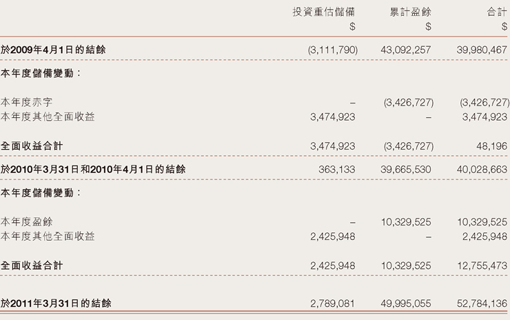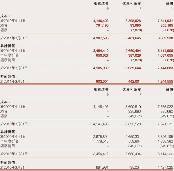 截至二零一一年三月三十一日止年度(以港幣列示)