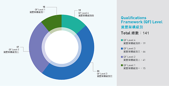在本年度,評審局為34個營辦者完成了初步評估和114項課程甄審,當中涉及廣泛的職業界別。這些營辦者來自公營機構、歷史悠久的教育/培訓機構、非政府組織和不同界別的商業機構。評審局以切合目標的原則為不同類型的課程進行甄審,例如職前訓練、內部培訓、在職培訓和技能提升課程等。職業訓練局亦按其所取得之學科範圍評審資格,於報告期內開辦了485個指定學科範圍的課程。