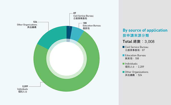 在報告期內,市場對非本地課程評核服務需求殷切。本年度經評審局評核的非本地課程達574個(包括70項新註冊申請、363項周年申報及141項改動申請),整體數字較去年同期上升15%;其中新課程註冊申請比去年上升了75%,周年申報及改動申請則分別上升了8%和15%。
