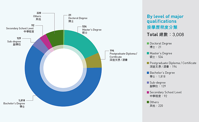 與上一個年度比較,評審局所處理的學歷評估個案由2,546宗增加18%至3,008宗。以下為評審局評估個案之分類: