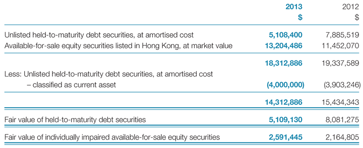 as at 31 March 2013 (Expressed in Hong Kong dollars)