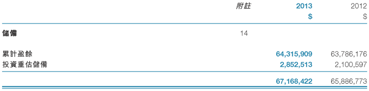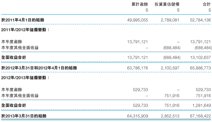 投資重估儲備根據附註2(c)(ii)的會計政策於資產負債表日可供出售股本證券的累計盈餘。