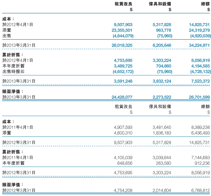 截至二零一三年三月三十一日止年度(以港幣列示)