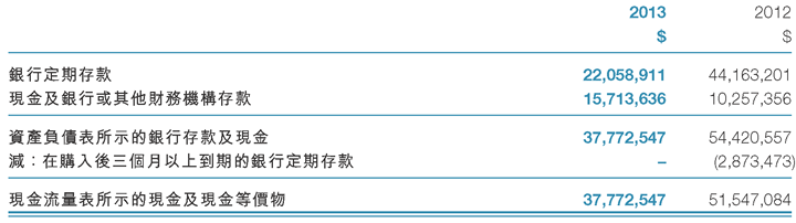 現金及現金等價物包括銀行存款及現金、存放於銀行和其他財務機構的活期存款,以及短期和高流動性的投資。這些投資可以隨時換算為已知的現金額、價值變動方面的風險不大,並在購入後三個月內到期。