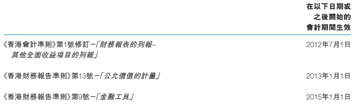 19 已頒佈但尚未生效的會計準則修訂、新會計準則及詮釋對於二零一三年三月三十一日止的會計年度的可能影響