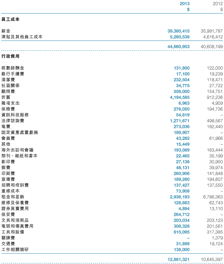 租賃改良成本沒有包括辦公室重修相關的估計成本(2013年:無;2012年:1,876,485元)。
