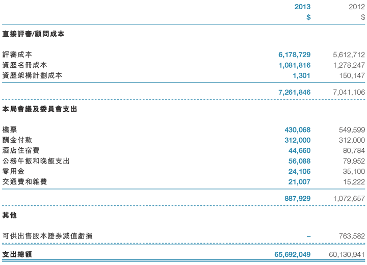 所有與本局大會成員、關鍵管理人員和政府有利益的機構進行的評審活動交易,均屬正常業務運作並已按照本局的費用徵收政策及條例訂明的費用一覽表徵收費用。